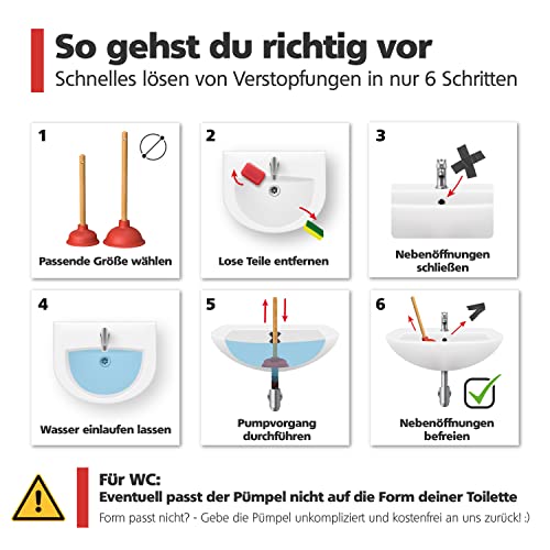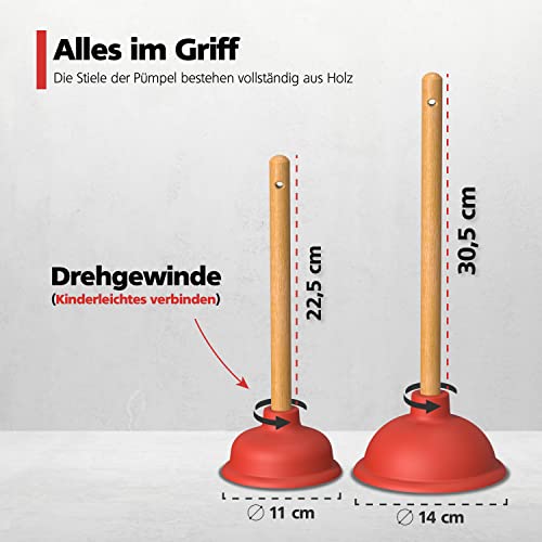 Details: Nirox 2er Set Saugglocke – Pümpel mit 110 & 140 mm Durchmesser – Pömpel mit starker Saugleistung – Abflussstampfer inkl. Holzgriffe – Chemiefreier Ausgussreiniger