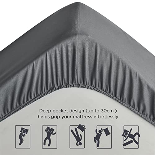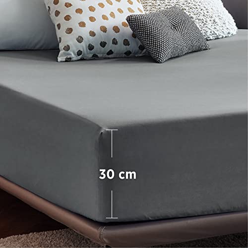 Bedsure Spannbettlaken 180x200cm Boxspringbett Topper – Mikrofaser Bettlaken 180×200 cm grau für Matratze bis 30 cm hohe, weiches Spannbetttuch Leintuch