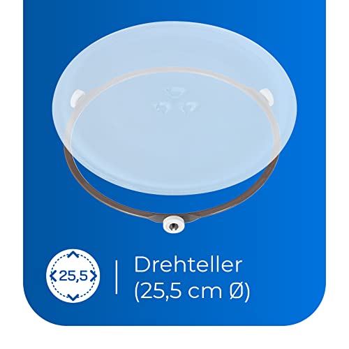 Der lackierte Garraum verspricht eine einfache und hygienische Reinigung. Für eine gleichmäßige Erwärmung Ihrer Speisen sorgt der integrierte Drehteller mit einem Durchmesser von 25,5 cm.