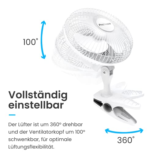 Pro BreezeTM Mini Ventilator mit Clip, sehr leiser Betrieb, 20 cm Durchmesser, 2 Geschwindigkeitsstufen – ideal als…