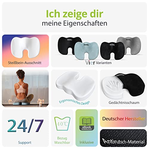 feela.® Orthopädisches Sitzkissen [3 Härtegrade] – Ergonomisches Sitzkissen für Bürostuhl & Co – Wirkt…