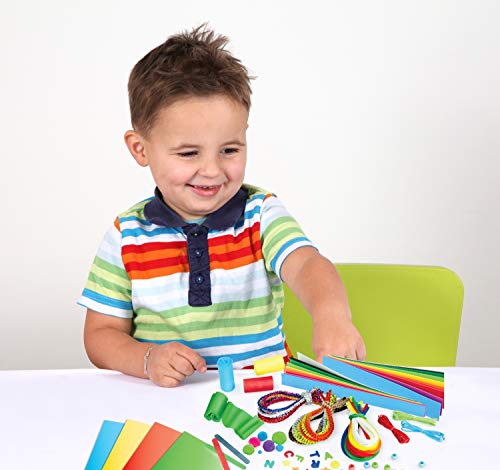 Details: Lena 42629 Bastelkoffer mit vielfältigem Material zum Basteln, mit Moosgummi, Buntpapier, Perlen, Pompon, Satinbänder, Knöpfe, Kulleraugen und vielem mehr, ab 5 Jahre, Jumbo 800er Bunt, 800 Teile