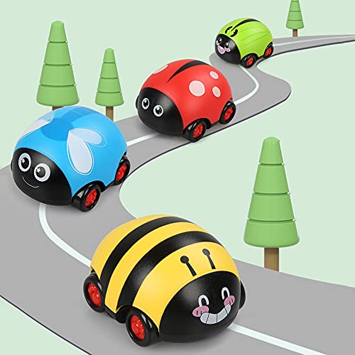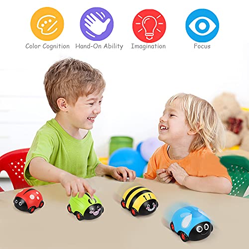 【4 in 1 Set】 LEADSTAR Spielzeugautos enthalten 4 niedliche insektenförmige Autos in leuchtenden Farben: Marienkäfer, Käfer, Biene und Libelle mit lustigem Gesicht, die die Aufmerksamkeit der Kinder leicht auf sich ziehen. Perfekt für 1 2 3 Jahre alte Kinder.