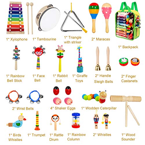 【Children’s Instrument Set】 Enthält 17 Arten von 30 Arten des Schüttelns, Klopfens und Spielens von Instrumenten. Es eignet sich eher zum Starten von Musik als Schlaginstrumente für Kinder im Vorschulalter. Bieten Sie kreative Geburtstag Ostern Geschenk für Kinder, Jungen, Mädchen und Kleinkinder