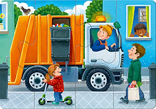 Der mitwachsende Puzzle-Spaß mit 4 liebevoll illustrierten Motiven rund um die beliebtesten Fahrzeuge von Stadt, Baustelle und Bauernhof ist der ideale Einstieg in die große Welt des Puzzelns