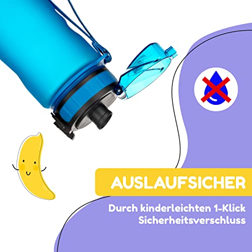 schmatzfatz Trinkflasche Kinder Auslaufsicher 0,5L, Sport Trinkflasche Schule zum Wandern & Fitnessstudio, Geschmacksneutrale Wasserflasche 500ml, Trinkflasche mit Fruchteinsatz, BPA-Frei
