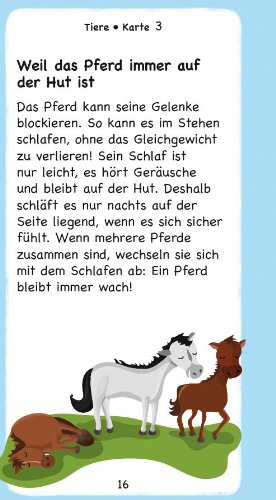Warum ist das Meerwasser salzig? Warum schlafen Pferde manchmal im Stehen? Und warum wird man durch Seife sauber? Das ultimative Quiz-Spiel für schlaue Füchse und neugierige Entdecker! Die Antworten auf 100 Fragen zu den Themen Tiere, Umwelt, Wissenschaft und Entdeckungen, Redewendungen, Die Erde, Der menschliche Körper und Die Natur enthält dieses Kinderquiz.