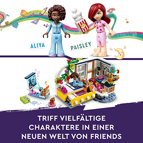 LEGO 41740 Friends Aliyas Zimmer, Übernachtungsparty-Spielzeug zum Sammeln mit Paisley aus der Serie 2023 und Hündchen-Figur für Mädchen und Jungen ab 6 Jahren