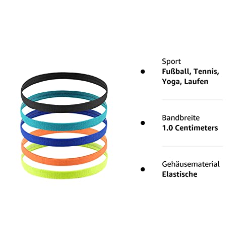 Details: AvoDovA Sport Haarbänder Dünn für Jungen, 5 STK Elastische Haarbänder Kinder, Sport Haarband Damen, Stirnband Antirutsch, Stirn Schweißband Haarbänder, Stirnbänder Sport für Fußball Yoga Laufen