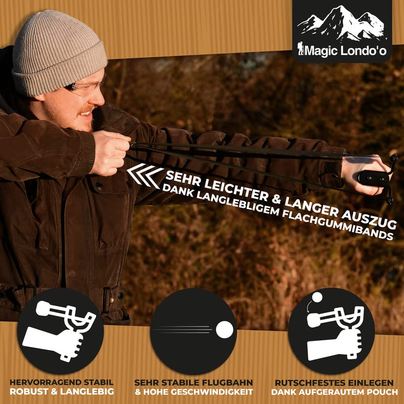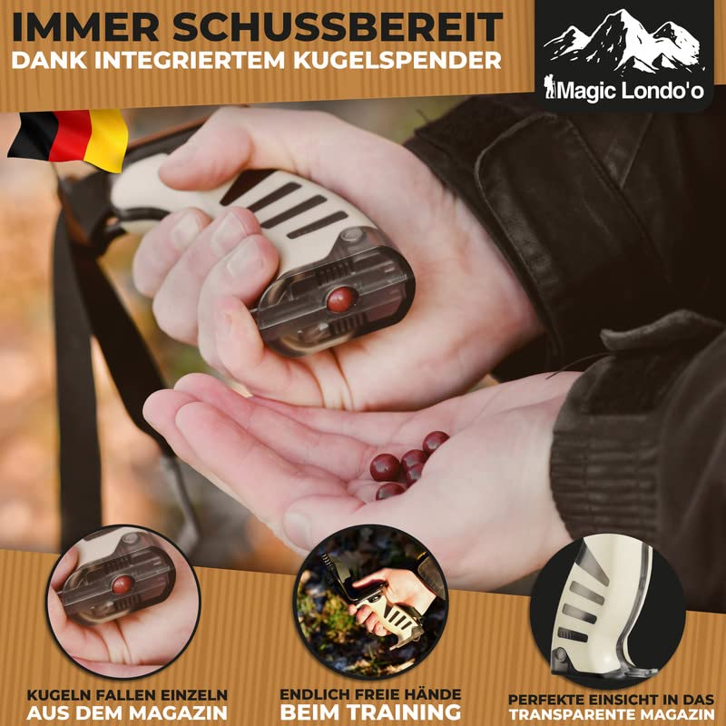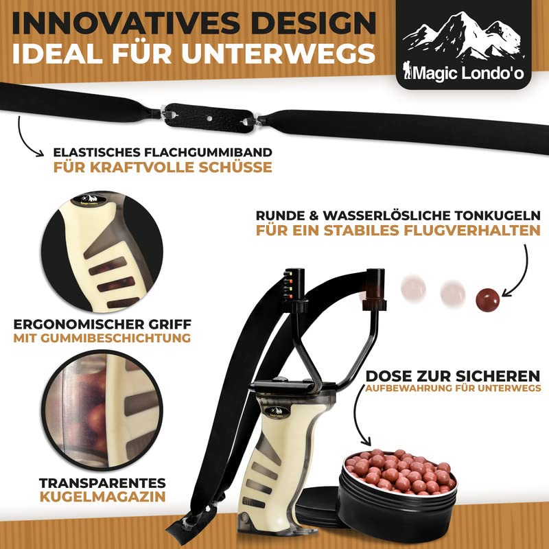 Magic Londo’o® Zwille Steinschleuder Profi -Set I Durchsichtiges Kugelmagazin I Robuste Schleuder Zwille I 200 Tonkugeln…