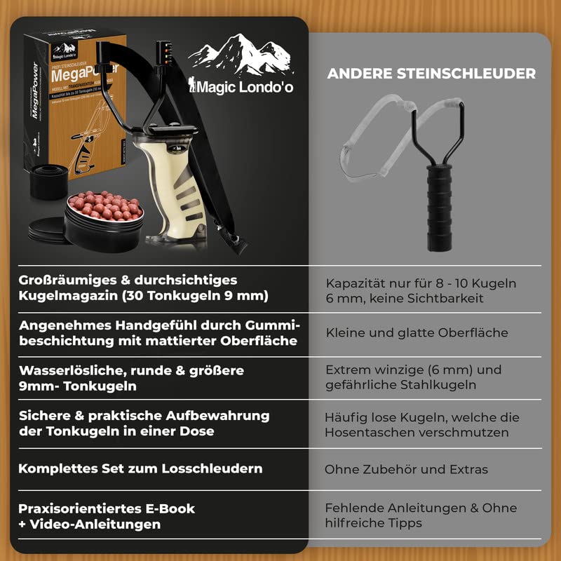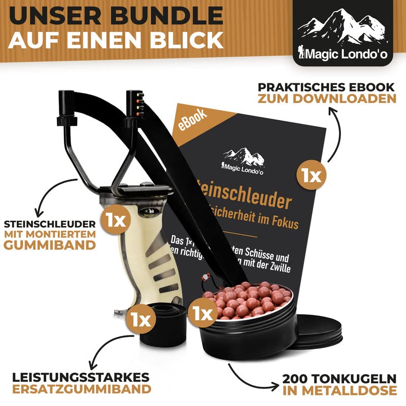 Details: Magic Londo’o® Zwille Steinschleuder Profi -Set I Durchsichtiges Kugelmagazin I Robuste Schleuder Zwille I 200 Tonkugeln…