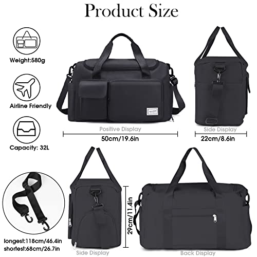 【Mehrere Taschen Holdalls Tasche】Die Abmessungen der Reisetasche für Frauen ist 32L Kapazität (50*22*29cm), CS COSDDI Sporttasche ist insgesamt 7 Taschen -1 geräumige Haupttasche, 1 Schuhfach, 4 Außentasche und 1 nasse Tasche für nasse Kleidung, Toilettenartikel oder Handtücher, halten alle Ihre wesentlichen gut organisiert.
