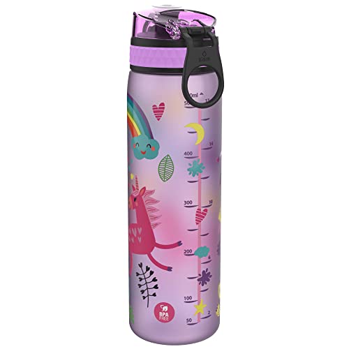 Ion8 Auslaufsichere Schlanke Trinkflasche, BPA-frei, 500ml, Einhörner, i8500FPPUNIC